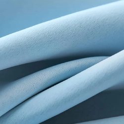 light blue blackout curtains texture and fabrics, showing the thick, smooth weave and soft folds of the light-blocking material.